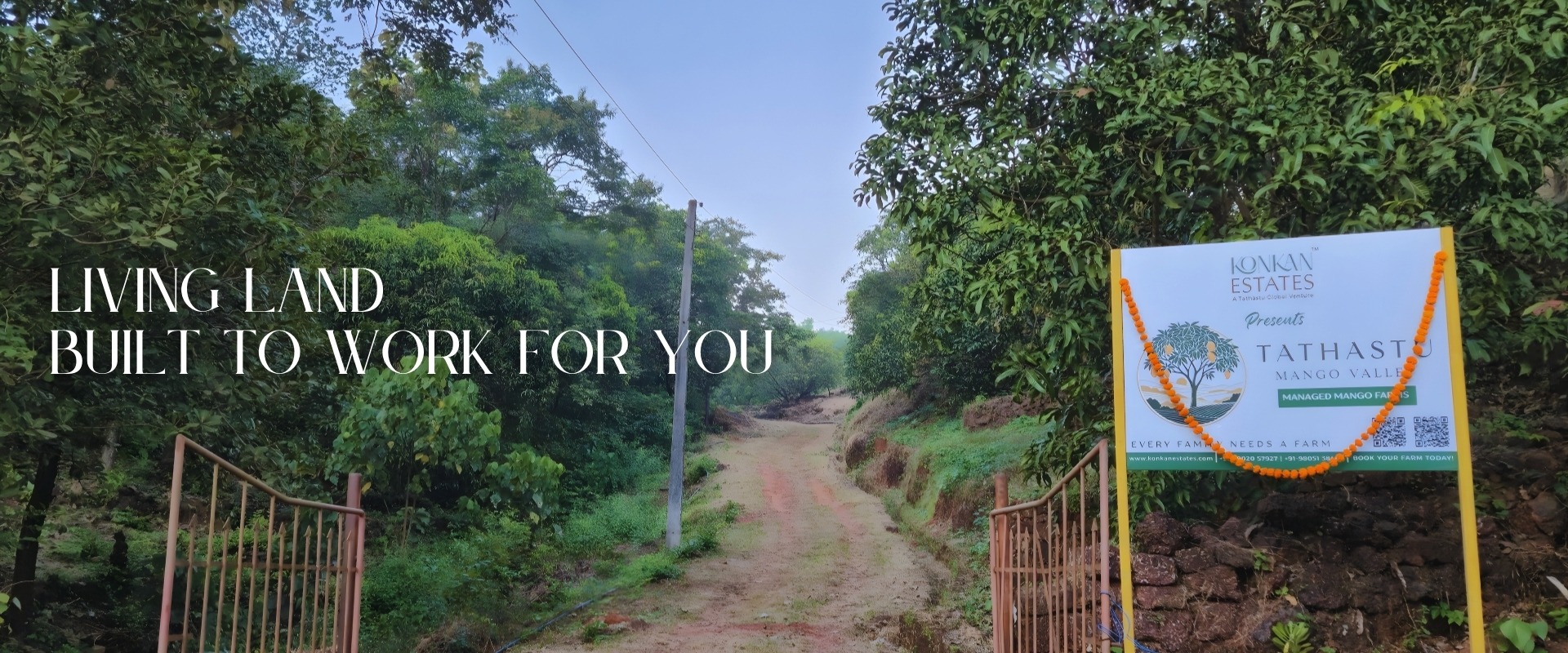 Own a premium farmhouse plot in Konkan’s renowned mango belt, offering assured returns through professionally managed mango cultivation and long-term land appreciation. At Tathastu Mango Valley by Konkan Estates, experience serene orchard living while your investment grows consistently—where nature, comfort, and financial security come together.